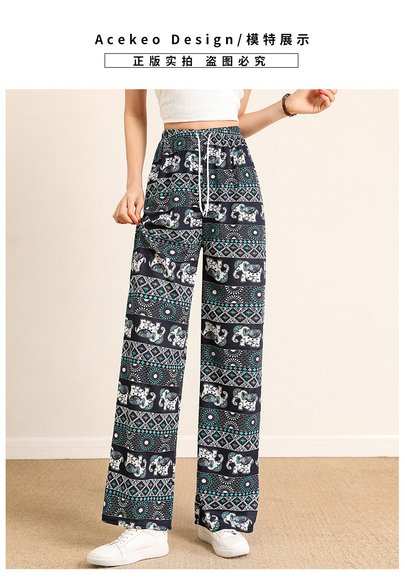 Foreign Trade Cross-Border Elephant Wide Leg Pants Female Summer Thin High Waist Vertical Loose Casual Pants Mopping Pants