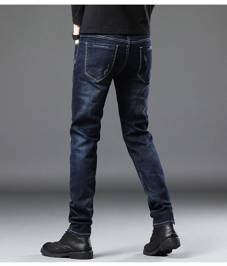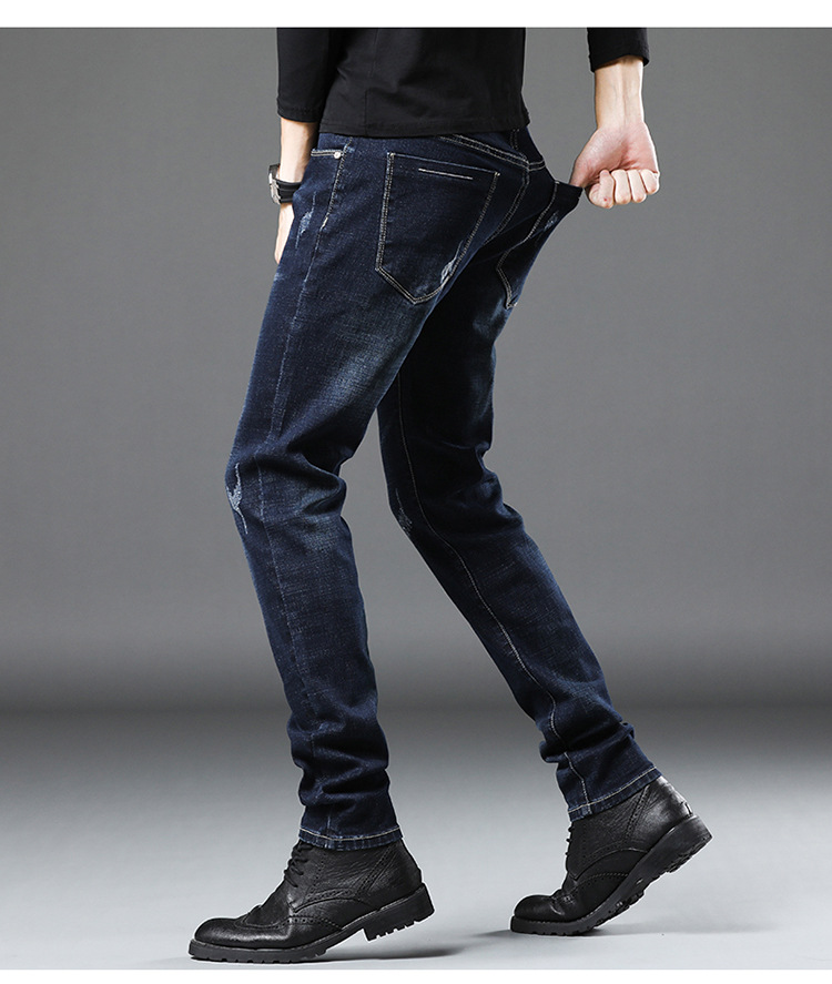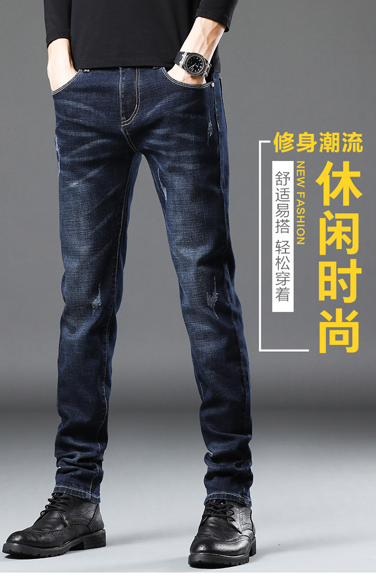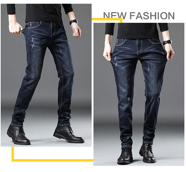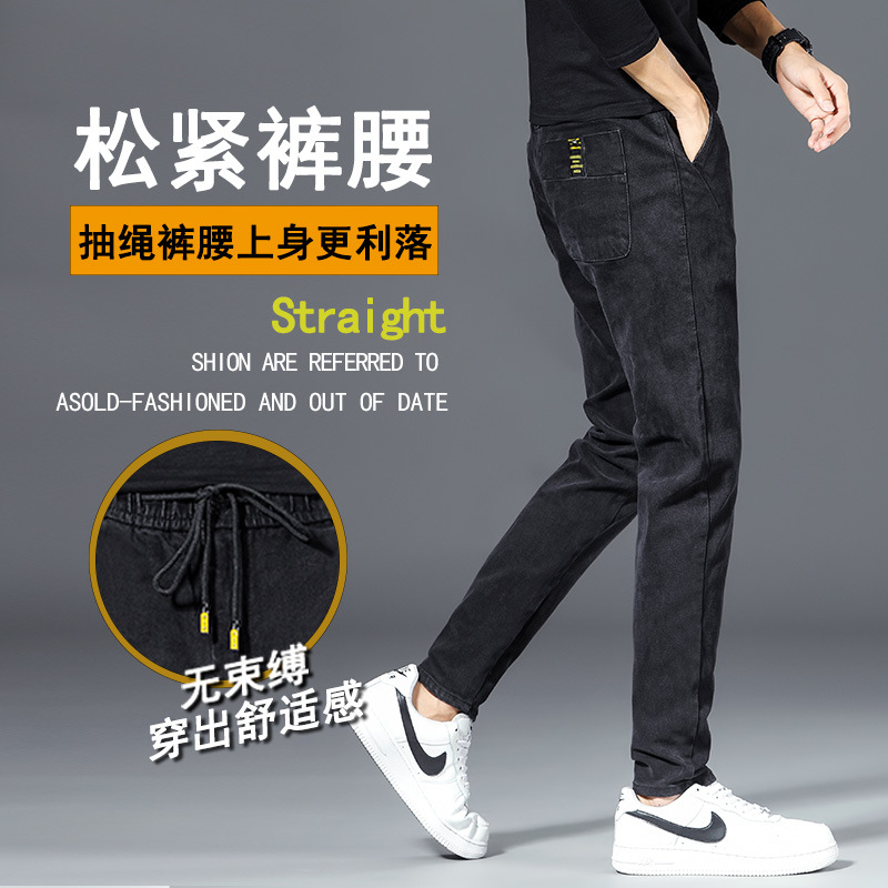 Casual pants men's spring new elastic waist slim straight wave brand black men's loose jeans for men
