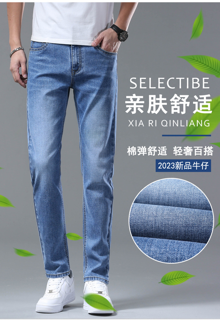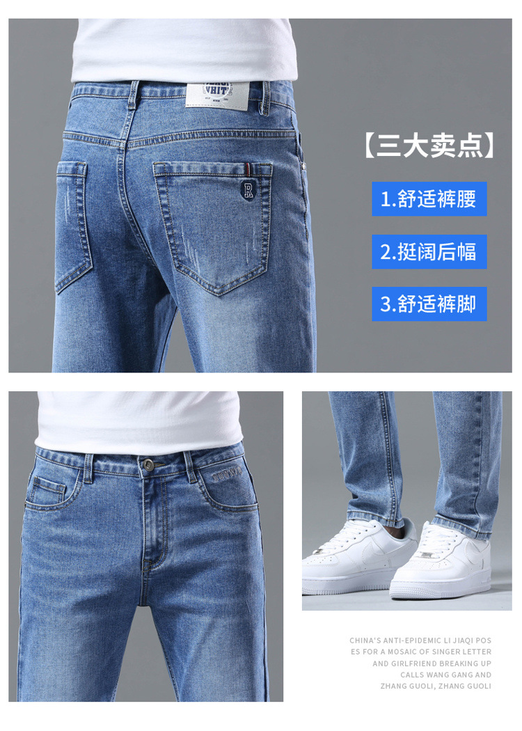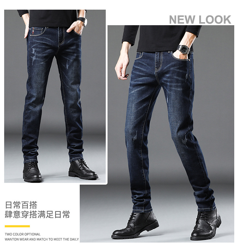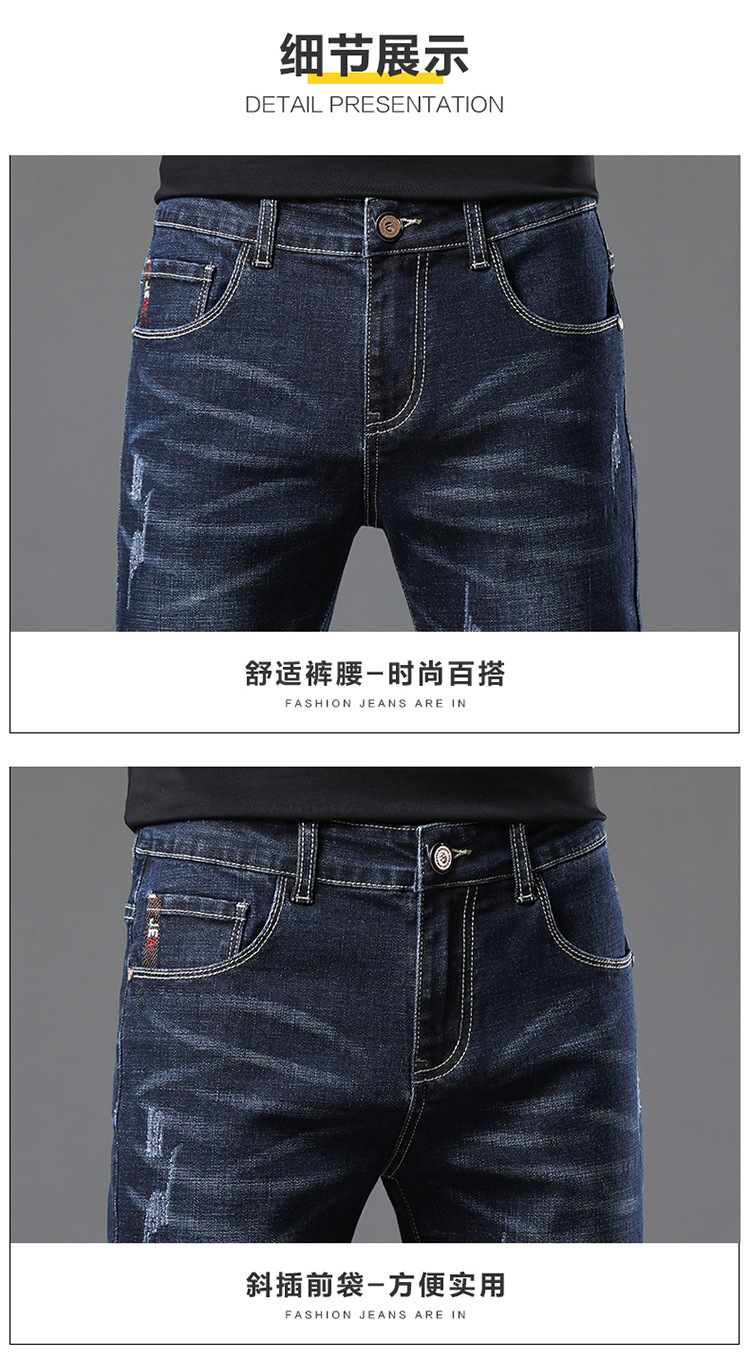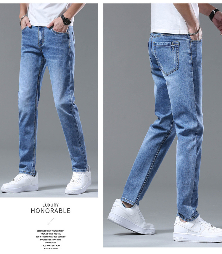Casual pants men's spring new elastic waist slim straight wave brand black men's loose jeans for men