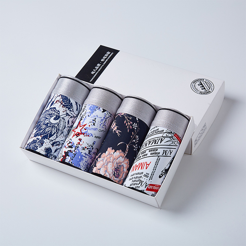 Men's underwear printed sexy boxers summer new ice silk underwear men's mid-rise men's shorts breathable four corners